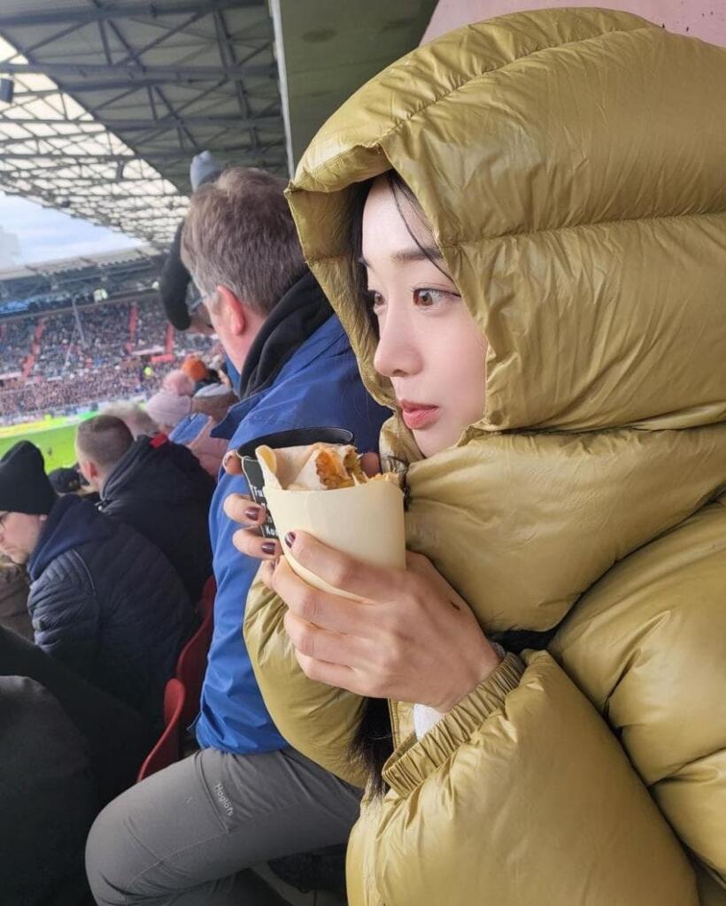특히 남편 이동경의 경기가 있는 날에는 아이와 함께 응원하는 모습도 종종 공개합니다.